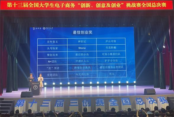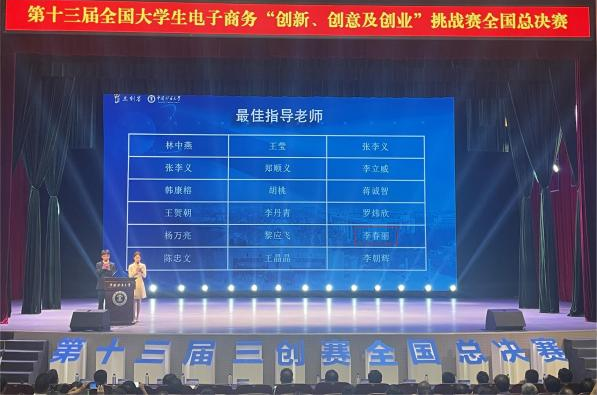 8月1日至2日,第十三届全国大学生电子商务“创新、创意及创业”挑战赛(以下简称“三创赛”)常规赛全国总决赛在中国矿业大学圆满举行。我校李春丽、金航飞老师指导的“跨境创业渔具”团队《渔来渔往》项目荣获特等奖,位列全国第三名。团队还荣获最佳创新奖、最佳创意奖、最佳创业奖,两位老师荣获最佳指导老师。