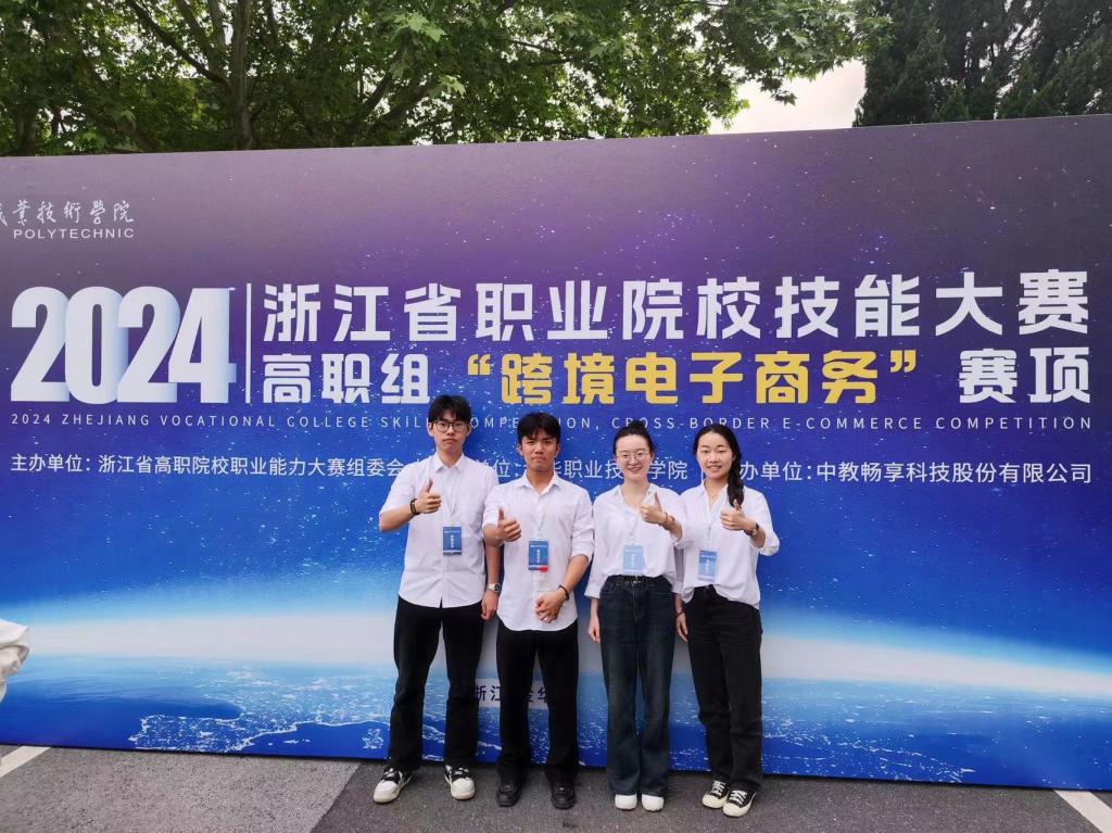 4月24日,由浙江省教育厅主办、金华职业技术学院承办、中教畅享(北京)科技有限公司协办的2024年浙江省职业院校技能大赛高职组“跨境电子商务”赛项成功举行,共有来自全省38所院校的38支代表队伍152名选手同场竞技。经过8小时的激烈角逐,由我校万象城娱乐awc线路方远航、孙巾山、蒋金颖、吴晨曦同学组成的代表队荣获一等奖,顺利晋级国赛。
