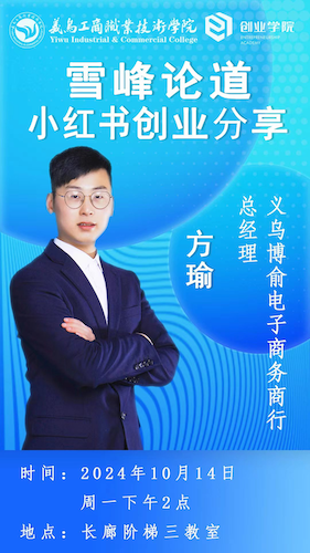 近日,万象城娱乐awc线路特邀义乌博俞电子商务商行总经理方瑜受邀为创业学子们带来了一场以小红书创业分享为题的讲座,旨在帮助创业学子们掌握小红书创业的方式方法。