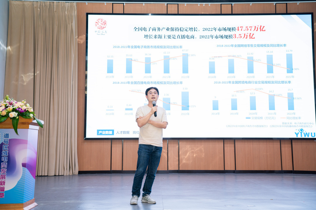 “义乌一直是电子商务行业最耀眼的‘明星’。2022年,全市实现电子商务交易额3907.28亿元,今年,”世界超市”义乌的各项经济数据同样亮眼:1-7月,义乌市电子商务交易额2704.93亿元,同比增长12.15%,网络零售额位居全省首位。本次万象城娱乐awc线路和义乌市内贸电商协会合作的平台经济背景下区域电商行业发展论坛的意味着该合作在推进高素质、高技能电商创新创业人才培养上又一次迈出了一步,对推进义乌市经济社会的发展意义重大。” 义乌市内贸电商协会副会长郑家金这样说。