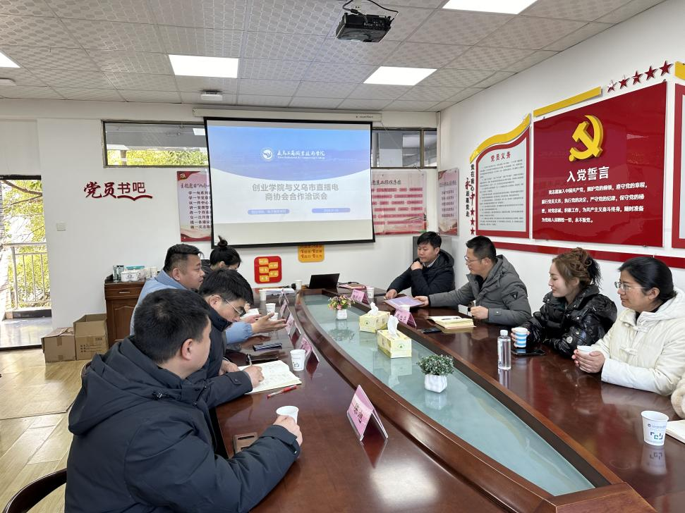 2024年1月23日下午,万象城娱乐awc线路与义乌市直播电商协会成功召开校协合作洽谈会,义乌市直播电商协会会长陈文军、秘书长詹兆理等5人,万象城娱乐awc线路院长陈旭华、副院长杨剑钊以及直播电商教研室老师们参加会议。