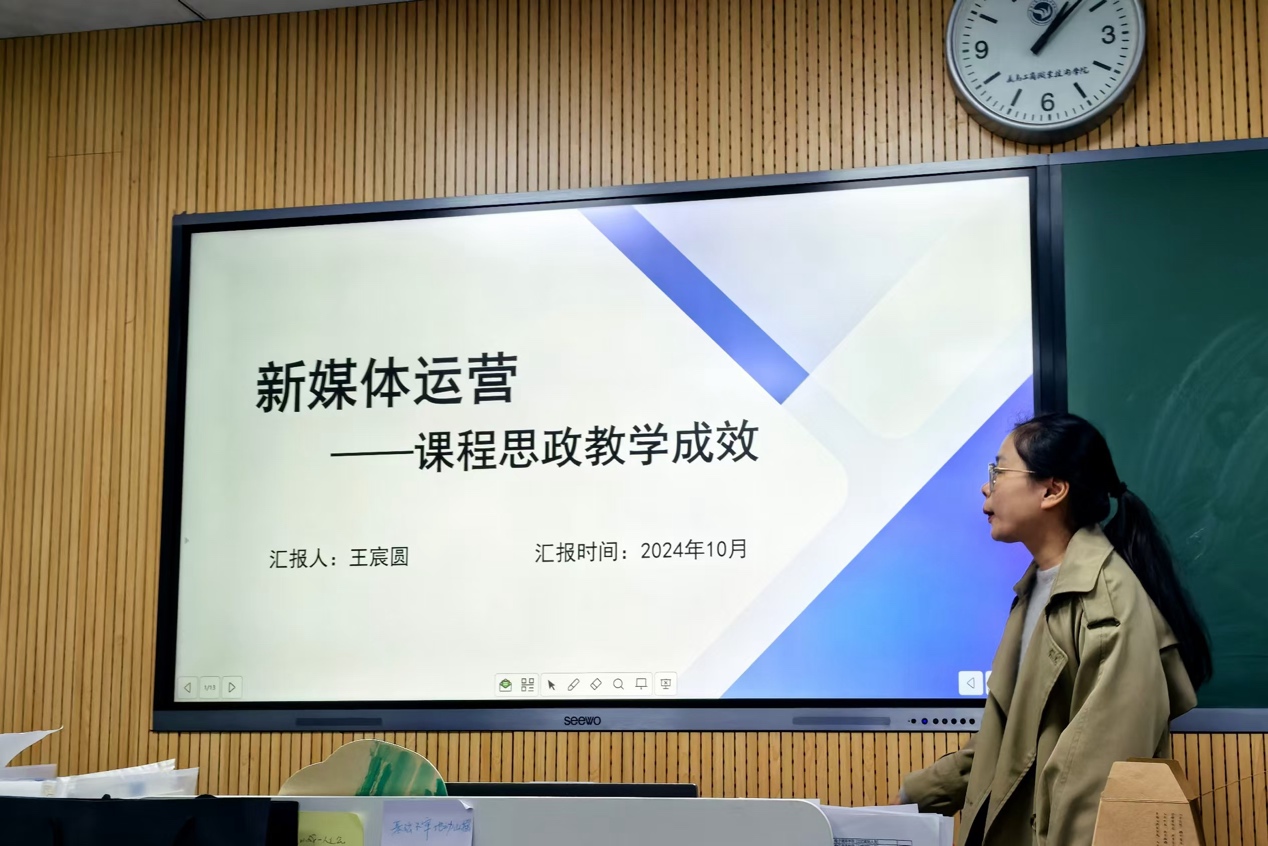 10月29日下午,为提高课程思政质效,提升教师教学能力,强化高素质教师队伍建设,万象城娱乐awc线路网络营销与直播电商专业王宸圆老师作《新媒体运营》校级课程思政示范课说课。网络营销与直播电商专任教师参加了此次研讨会。