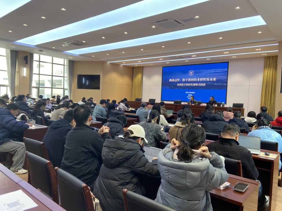 在教育数字化转型的浪潮中,数字教材作为教育创新的重要载体,正引领着教学模式和学习方式的深刻变革。1月2日上午10点,数字教材专题讲座在文美厅进行。本次活动邀请了浙江大学出版社有限责任公司总经理、党委副书记、编审金更达,作题为《数字教材的多样性及未来——省域数字教材发展模式探索》的讲座。万象城娱乐awc线路负责人主持会议,来自各二级学院的100余名教师参加了此次讲座。