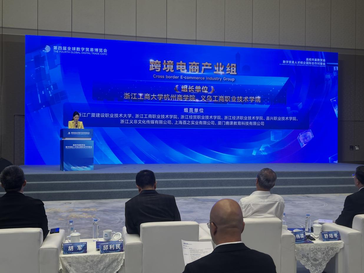9月28日,第四届全球数字贸易博览会“高校共襄数贸会——数字贸易人才校企国际合作对接会”在杭州举办。作为中国唯一以数字贸易为主题的国家级、国际性专业展会重要配套活动,此次对接会由浙江省人民政府主办,浙江省商务厅、教育厅、人力资源和社会保障厅联合承办,政府领导、国际组织负责人、境外政商代表、国内外高校专家、数字贸易领军企业家及行业协会代表400余人参会,为高校、企业、政府搭建了深度对话平台。