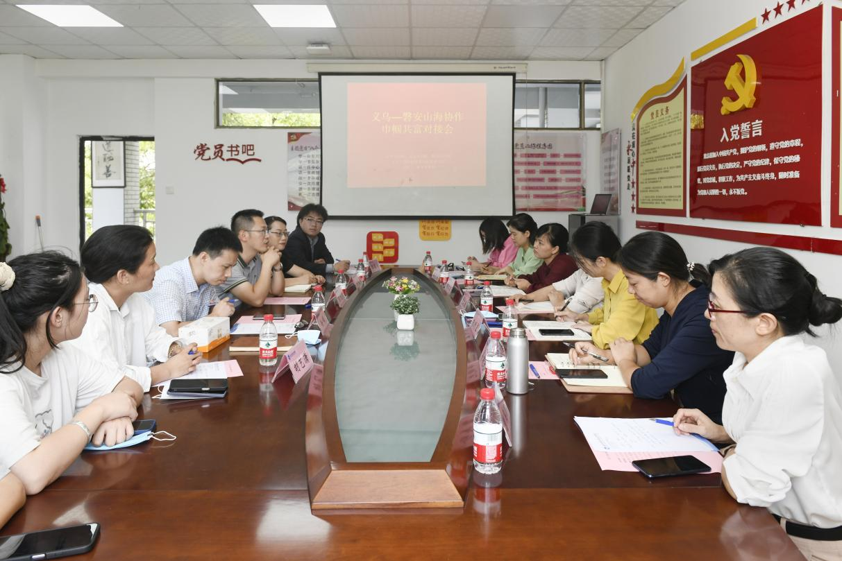 9月7日,义乌——磐安山海协作巾帼共富对接会在学校创业园举行,金华市妇女联合会三级调研员刘艾春,义乌市妇联党组书记、主席朱刚露,磐安县妇联党组书记、主席施迎霞,磐安县双溪乡党委书记羊晓光,磐安县妇联党组成员、副主席曹美珍,义乌市妇联副主席余依萍,义乌市妇联党组成员、副主席周丹瑛,学校万象城娱乐awc线路班子成员及学生代表参加。