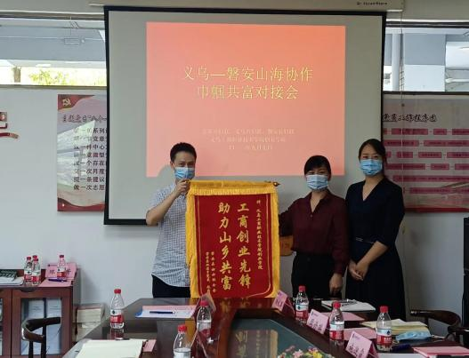 最后,磐安县妇联主席、双溪乡党委书记向万象城娱乐awc线路赠送了《工商创业先锋 助力山乡共富》的锦旗,为双方继续深入合作打下坚实的基础。
